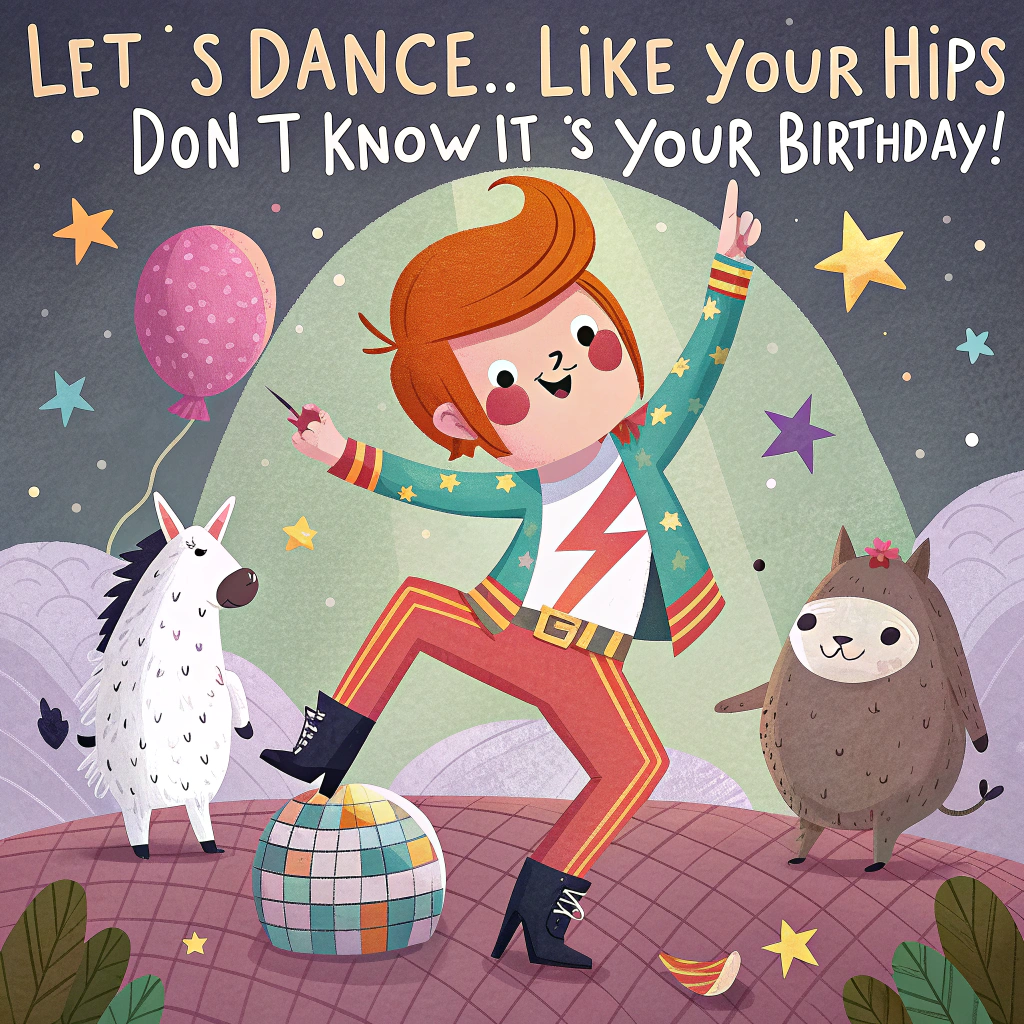 At the top of the image, "Let’s Dance... like your hips don’t know it’s your birthday!"