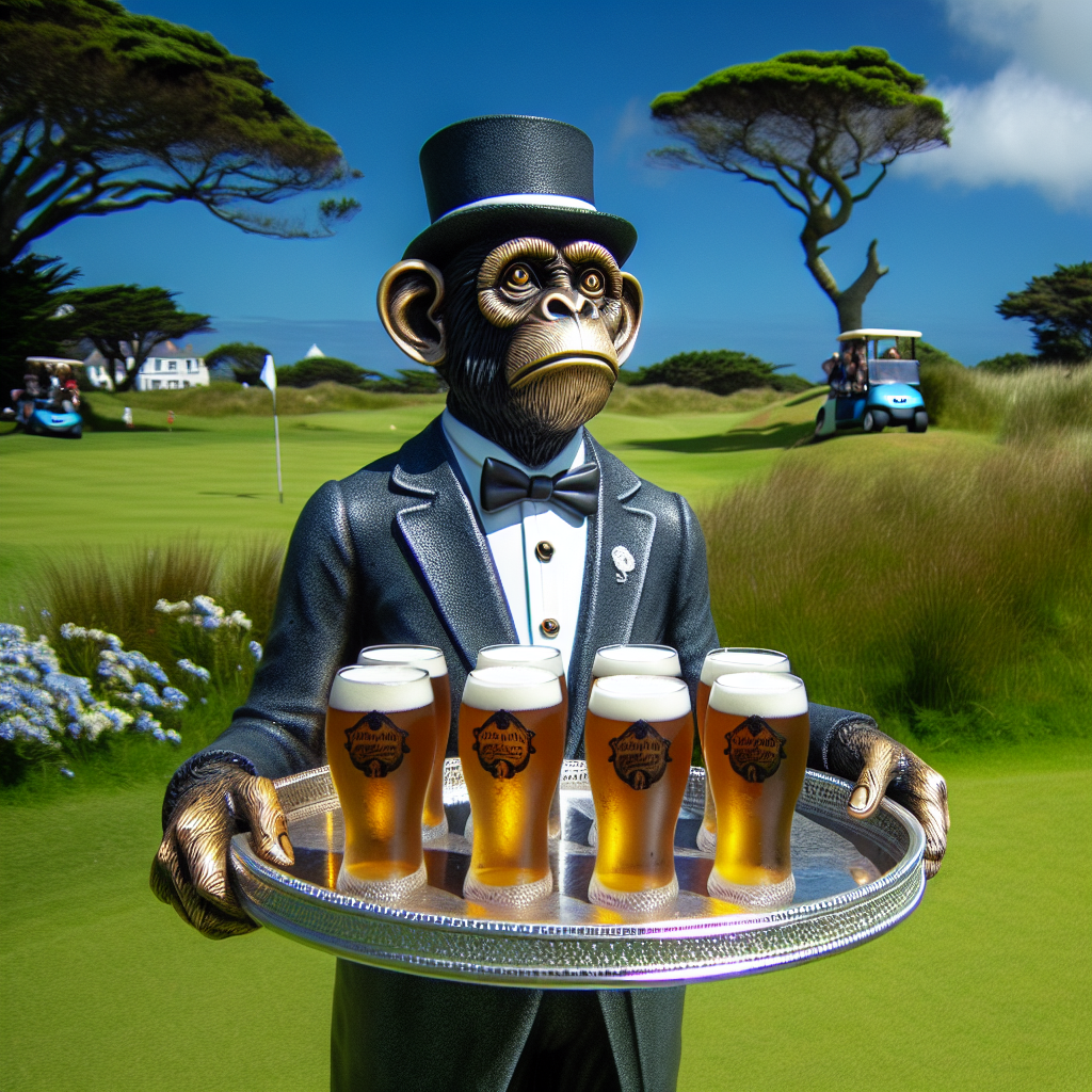 Generated with these themes: Golf, monkey butler, beer.