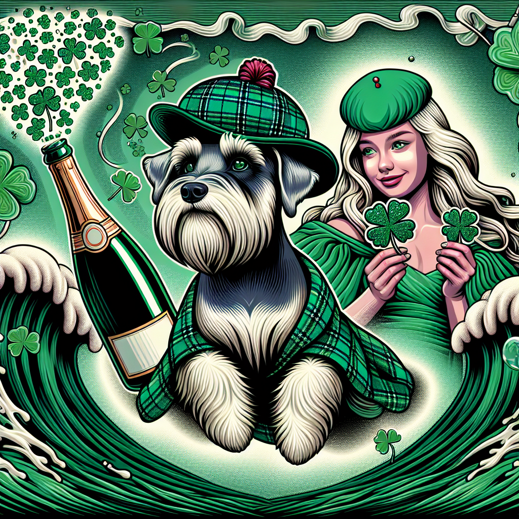 Generated with these themes: Schnauzer , Champagne , Glitter, Lucky, Green , Scotland , and Blonde girl .