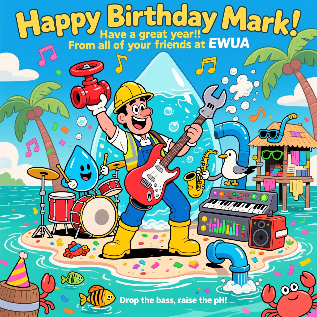 At the top of the Cartoon Style image, Happy Birthday Mark! Have a great year!! From all of your friends at EWUA