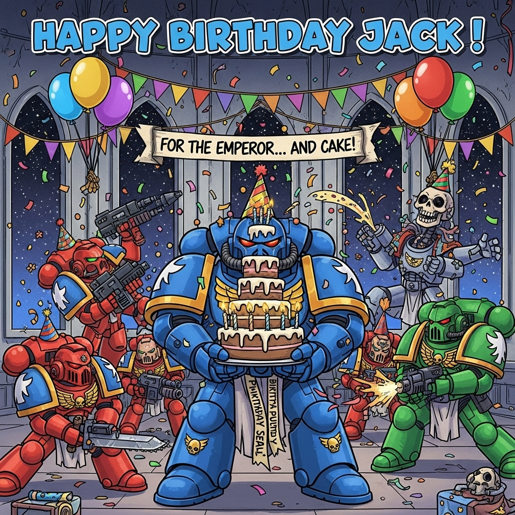 Generated with these themes: 40k Spacemarine birthday party , and .