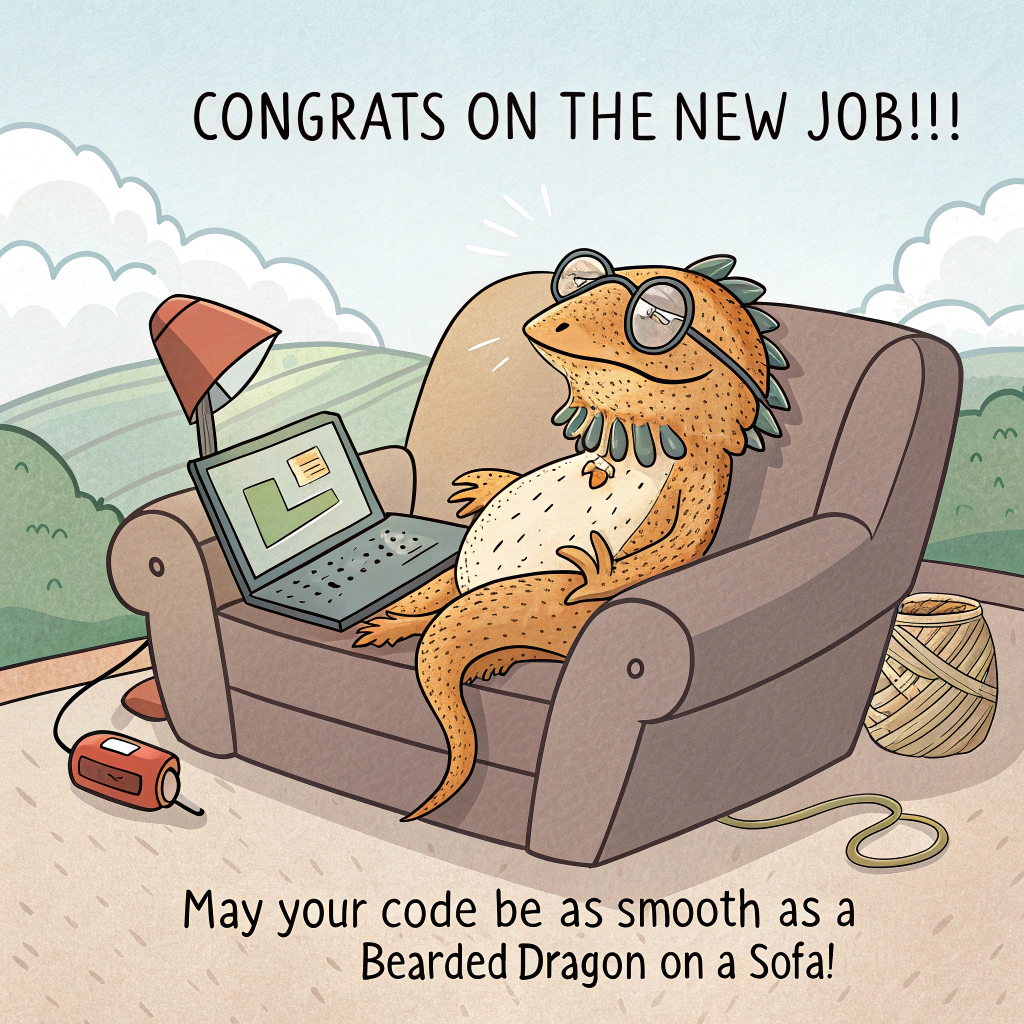 At the bottom of the image, "May your code be as smooth as a bearded dragon on a sofa!"