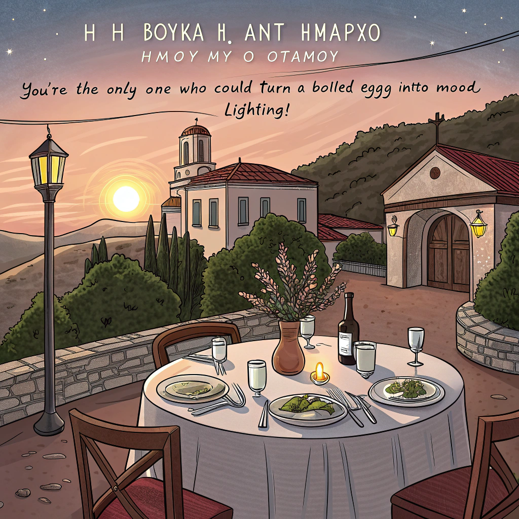 At the top of the image, "Σήφης Βουκάλης Αντιδήμαρχος Δήμου Μυλοποτάμου, you're the only one who could turn a boiled egg into mood lighting!"