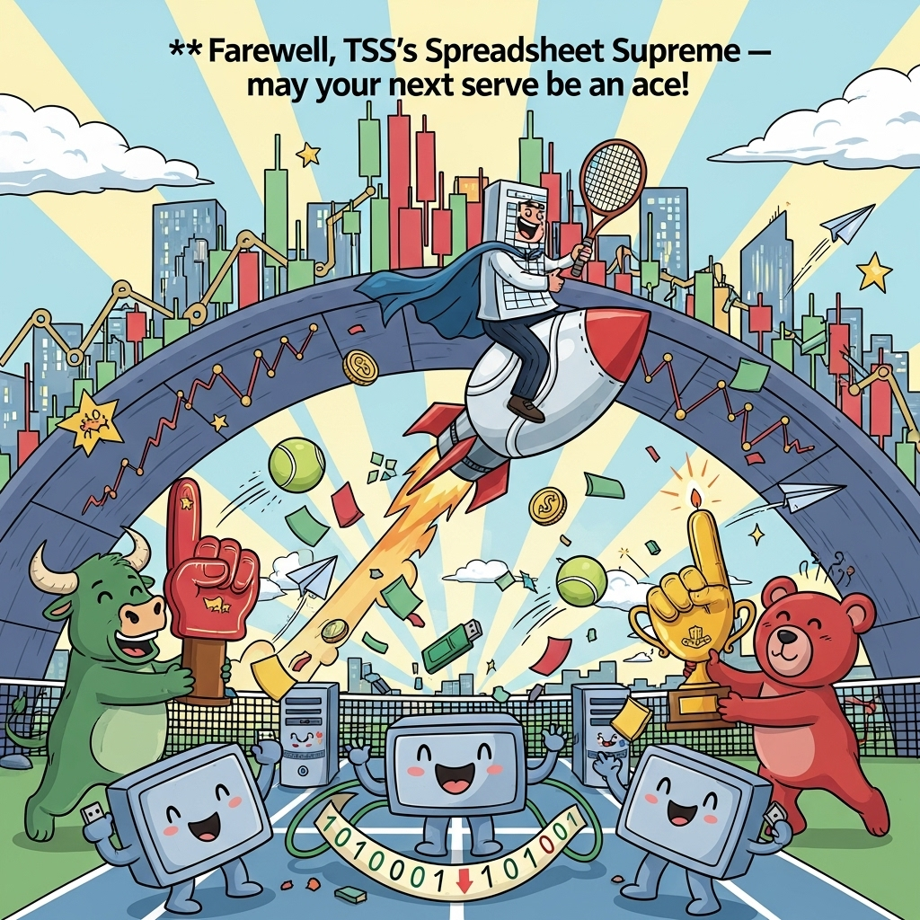 At the top of the Cartoon Style image, "Farewell, TSS’s Spreadsheet Supreme — may your next serve be an ace!"