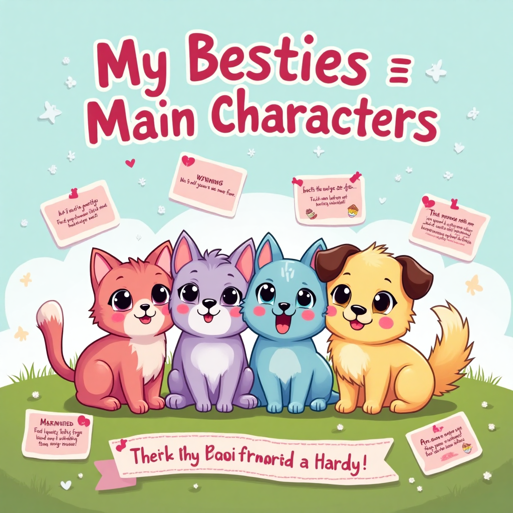 At the top of the Cartoon Style image, a big, bubbly title reads: ✨ “My Besties = My Main Characters” ✨